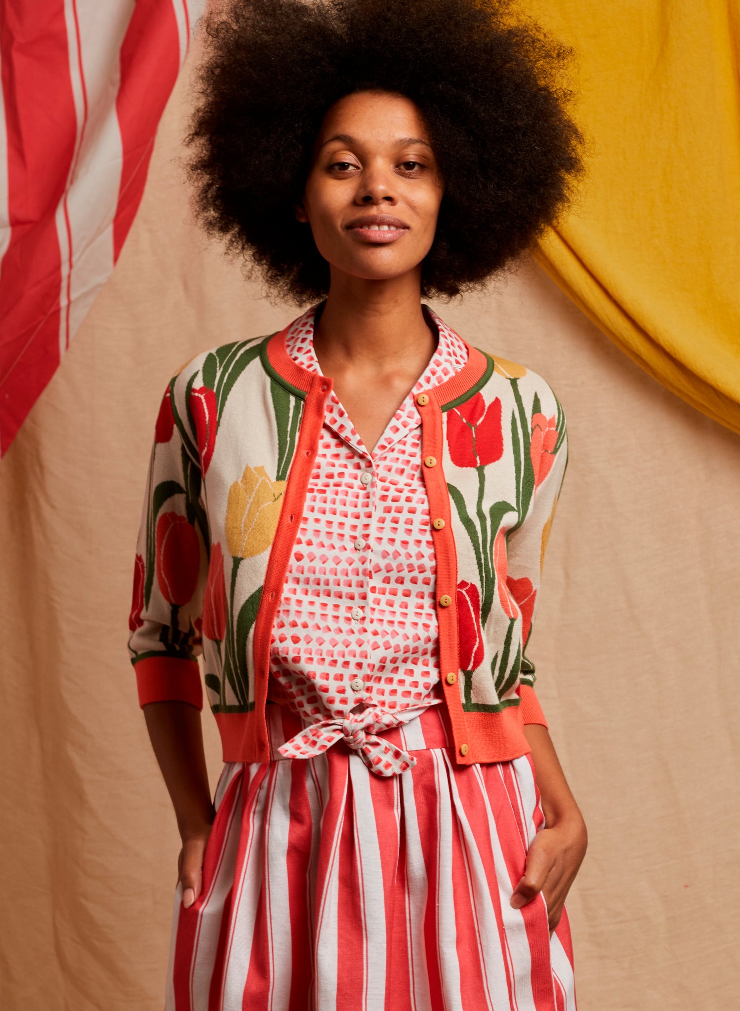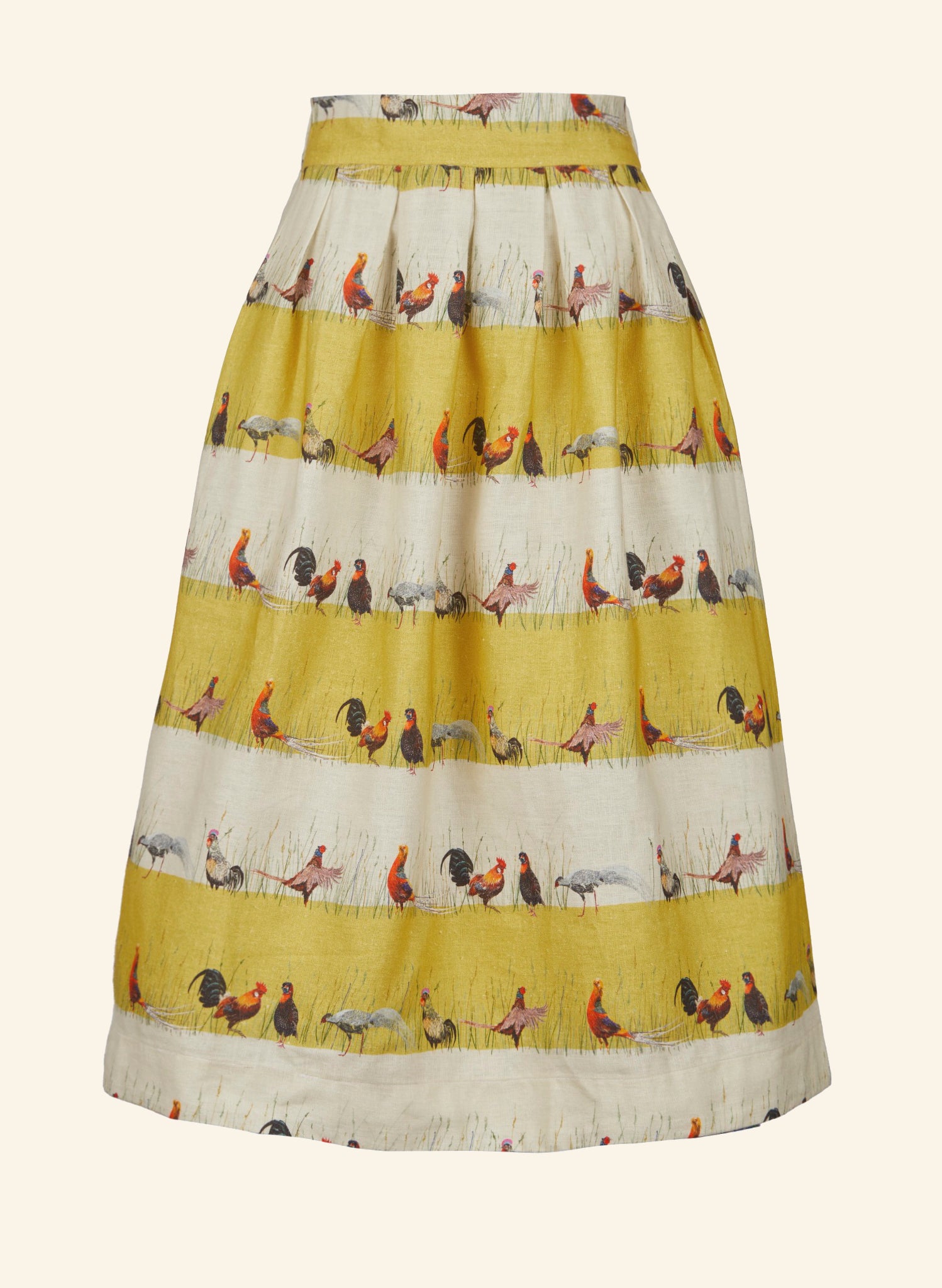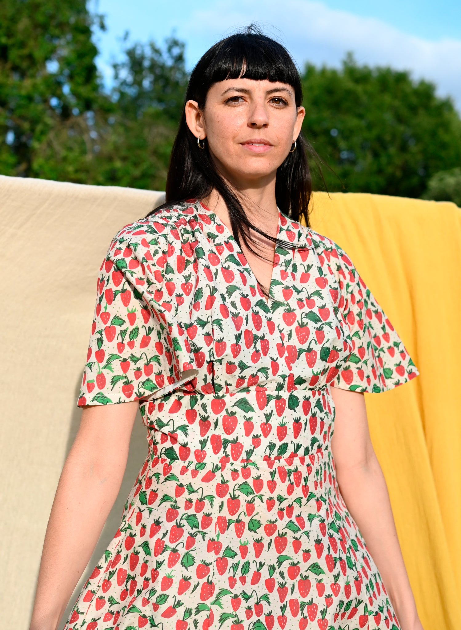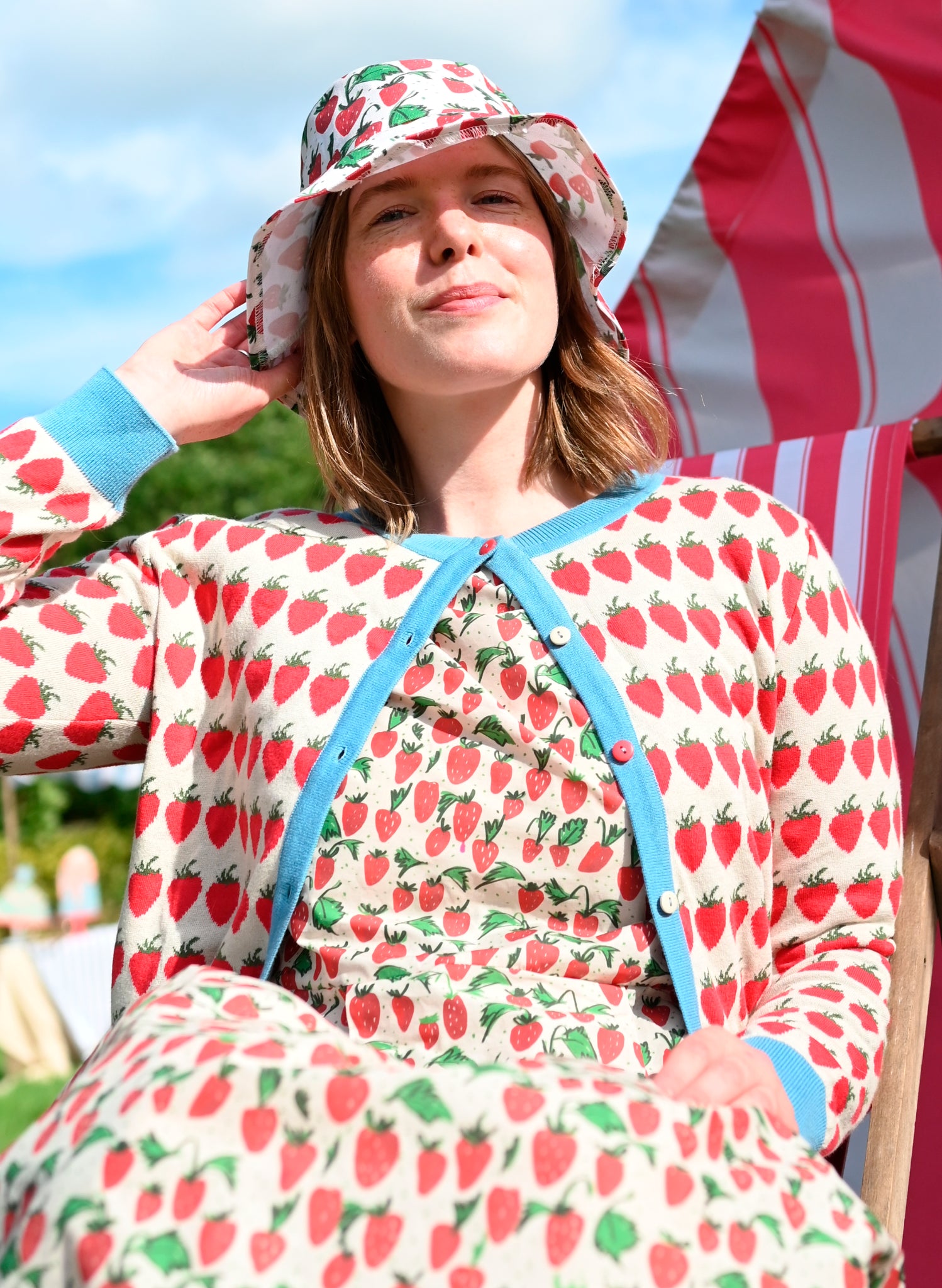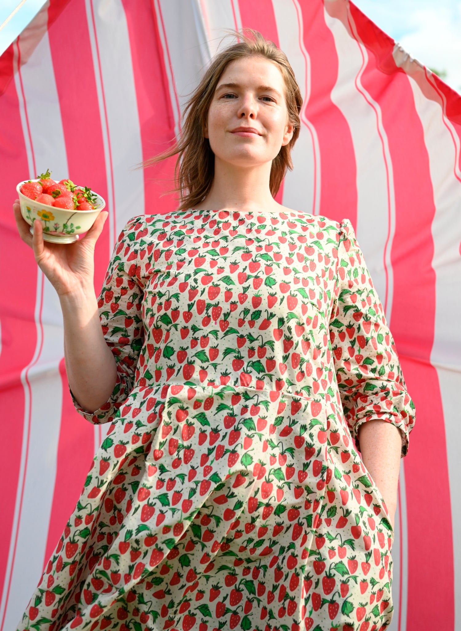 This season is village fête summer. Meet Chickens, Strawberries, Red Stripe, and Thumb Print, four joyful prints made for sunny days.