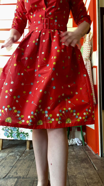 Got a sweet tooth? This limited edition Cynthia is a one-off: we've never made it like this before and we never will again. Made from archive fabric we have been saving in our warehouse, it's like a vintage Palava special. With a unique border print and covered in lollipops, we can't get enough of this sweet print!