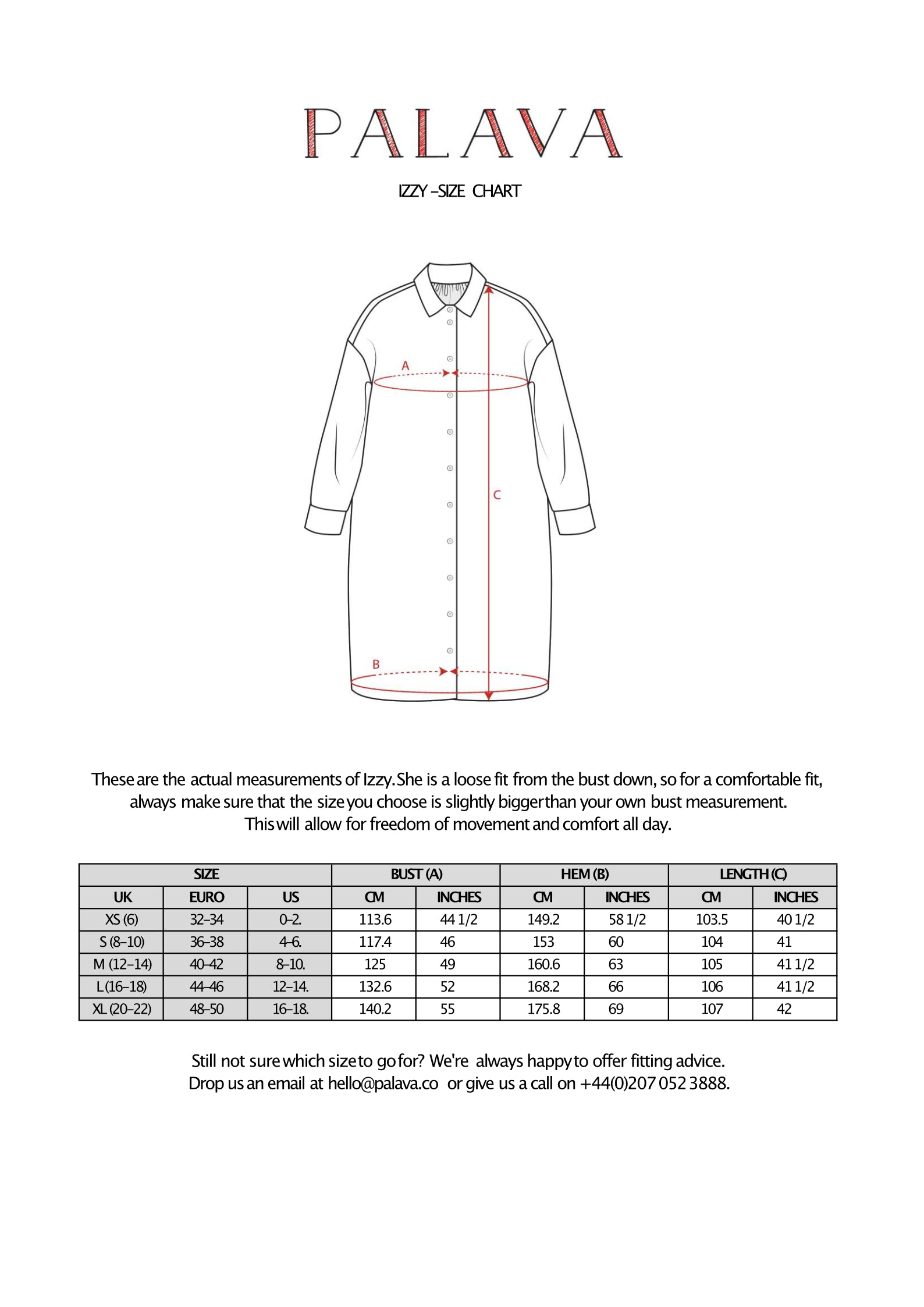 About the style: Izzy is a loose-fitting shirt dress that can also be worn open as a lightweight coat, and layered over Wilma trousers and knitwear. We love the new styling possibilities that this design affords - with the option to wear multiple layers underneath in the coldest months - without any feeling of restriction on the waist or hips. Izzy has the classic Palava deep pockets.