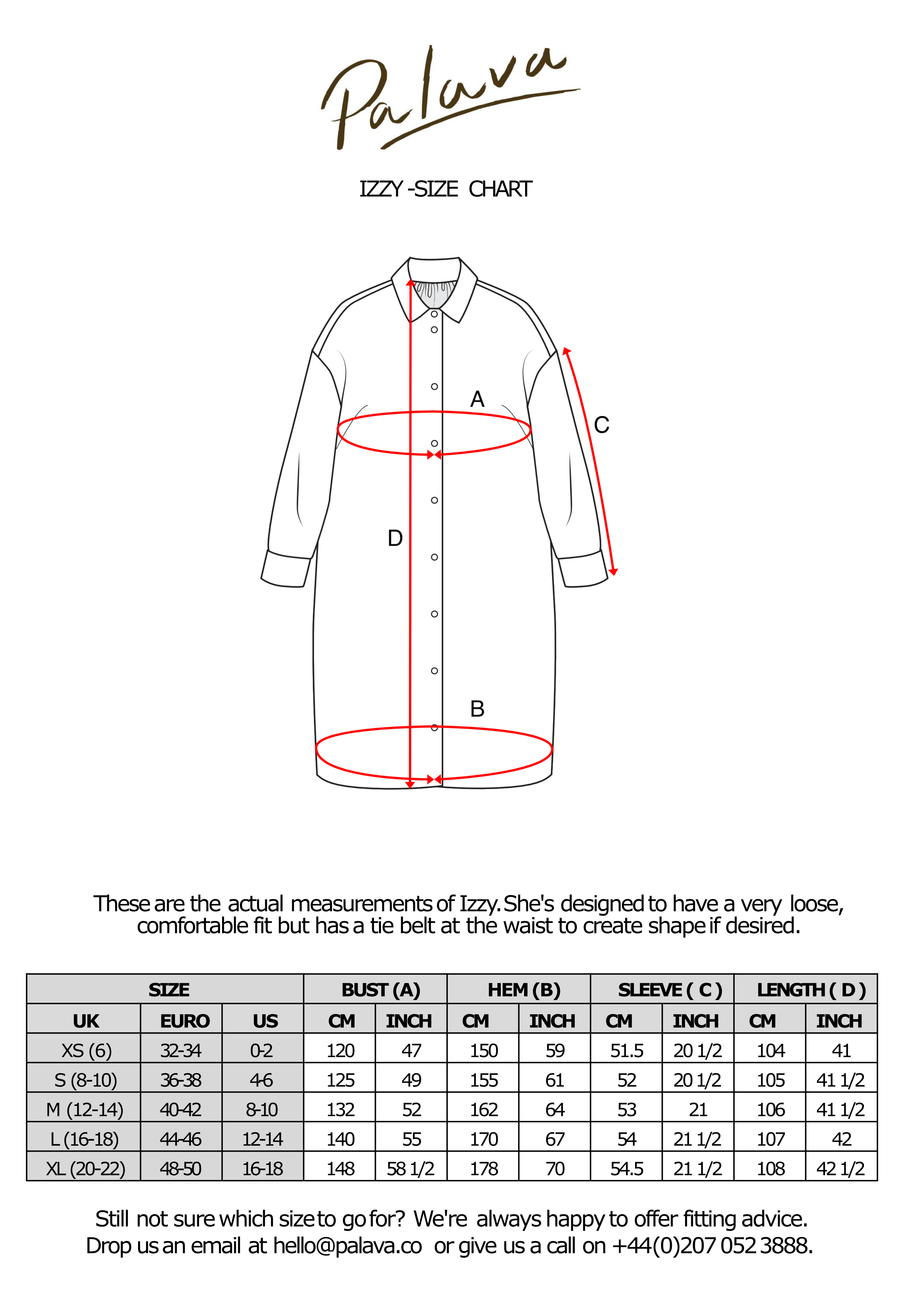 About the Style: Izzy is a loose-fitting shirt dress that can also be worn open as a lightweight coat for those cooler summer nights. All we know is Izzy will become your favourite companion for al-fresco dinner parties.
