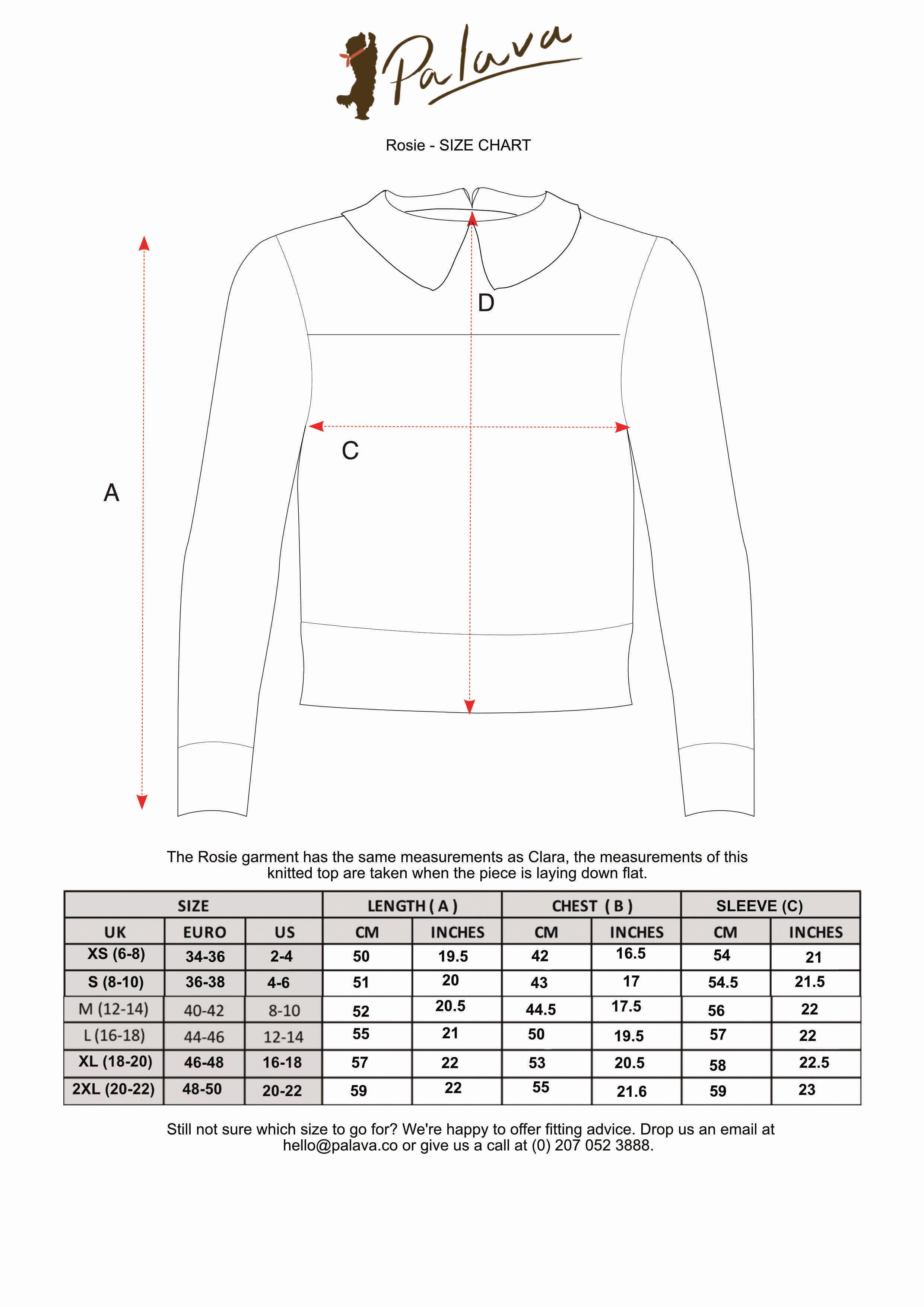 About the Style: Introducing our brand new knitted top: Rosie. Inspired by vintage knits, she's got a beautiful detail in the weave creating an interesting pattern while remaining monochrome. She has a faux front to ensure there's no gaping and lovely little coconut button detail.