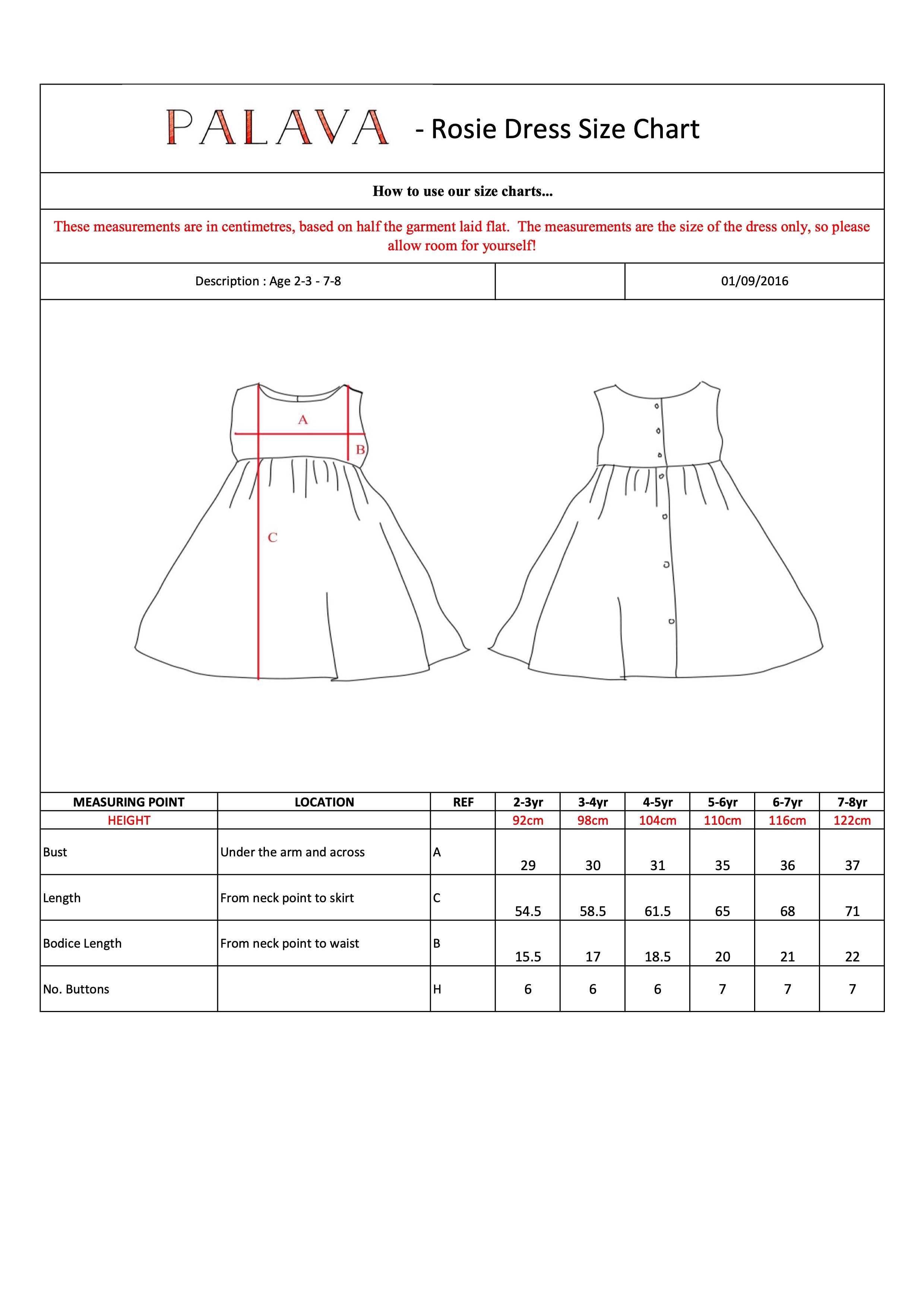Rosie has a high waist, gathered skirt and buttons down the back.